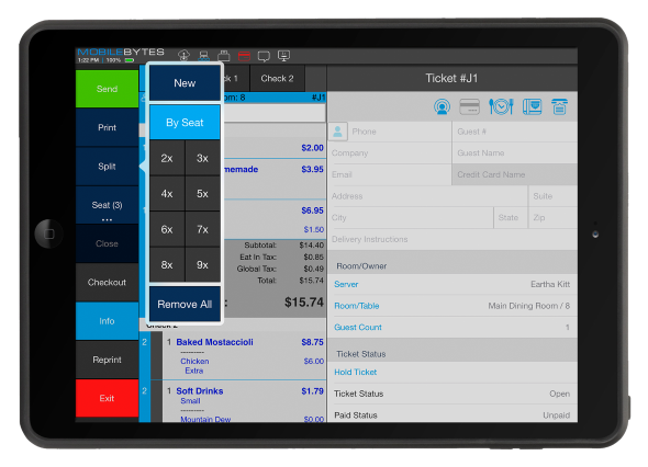 The 'Remove All' button quickly removes all separate checks and puts the ticket back to one ticket making it quick and easy for staff to start over if needed.