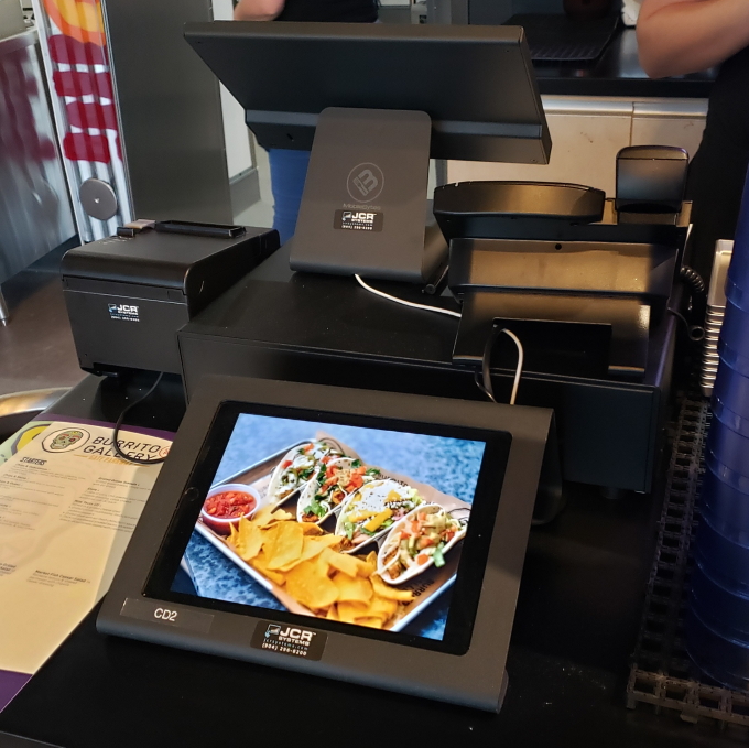 The Customer Display works in tandem with the Heartland Restaurant POS system (HRPOS) showing guests a customer friendly version of what their cashier is doing. When a guest orders a meal, the display will show each item ordered with any additions or changes requested. The display also shows a running subtotal of the meal’s cost.